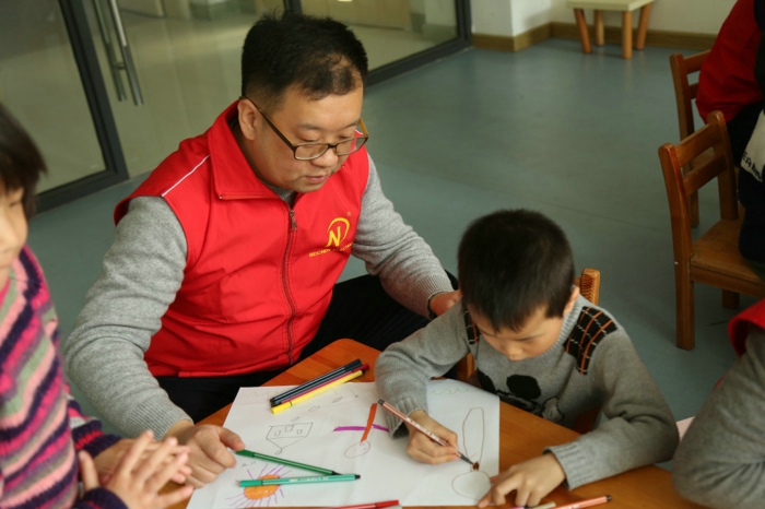 在福利院,大家陪著孩子一起畫(huà)畫(huà)、講故事,孩子們顯得特別的高興和開(kāi)心??粗麄円粡垙垹N爛的笑臉,我們被他們身上的那份純真與快樂(lè)深深地感動(dòng)。