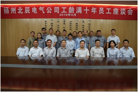 為進一步提升老員工的企業(yè)歸屬感,樹立老員工“傳、幫、帶”的標桿作用,更好地發(fā)揮自己的才能,為公司發(fā)展添彩。2016年6月7日下午,公司召開了2016年度“工齡滿十年員工座談會”。公司領(lǐng)導(dǎo)以及近20名老員工齊聚一堂,共憶在北辰的往昔歲月。