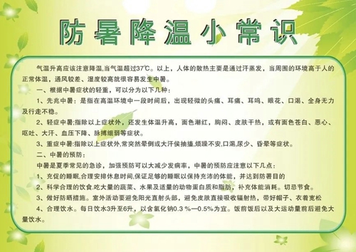 三是保障防暑物資供應(yīng)。在高溫來臨前,及時(shí)為生產(chǎn)一線的各班組配置醫(yī)藥箱、配齊風(fēng)油精、藿香正氣水等防暑降溫藥品。公司食堂每天還為生產(chǎn)一線供應(yīng)清涼解暑的綠豆湯等,強(qiáng)化人文關(guān)懷。