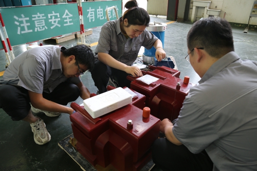 圖為卓能質(zhì)量事業(yè)部質(zhì)檢人員為每一件來料進行來料檢驗,對無錫本部華盛苑20kV戶內(nèi)環(huán)網(wǎng)柜等工程共15個電壓互感器進行工頻耐壓試驗,為后續(xù)的產(chǎn)品質(zhì)量作出保障。