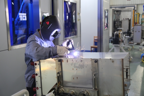 圖為開關(guān)事業(yè)部的焊接工人“焊”如雨下,戰(zhàn)高溫、斗酷暑,開關(guān)事業(yè)部加班加點于本周完成根據(jù)國網(wǎng)2022年第一批次標準化環(huán)網(wǎng)柜物資中標的數(shù)量要求而提前備貨的50面單元柜氣箱和交貨期緊急的23臺柱開工程,保證電力設(shè)備如期供應(yīng)。